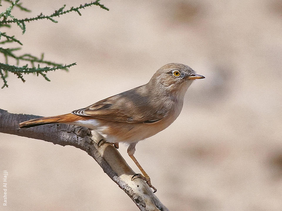Common passage migrant and winter visitor. A very small light coloured warbler; one of the few warblers found out in the desert in mid winter. Has the peculiar habit of sometimes following Desert or Mourning Wheatears.