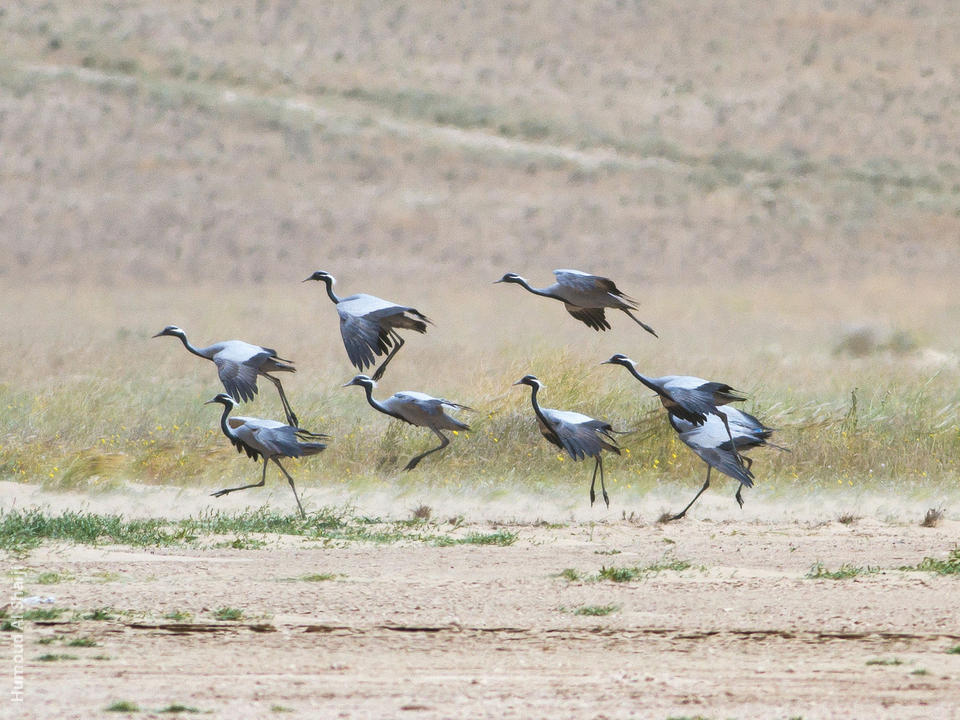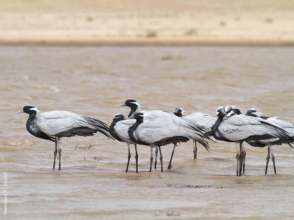 Vagrant. A strikingly beautiful and very rare crane. It is sometimes seen in winter, and sadly also shot by hunters. Sometimes migrating flocks are observed in flight; 100 observed at Al Abraq in mid September 1996.