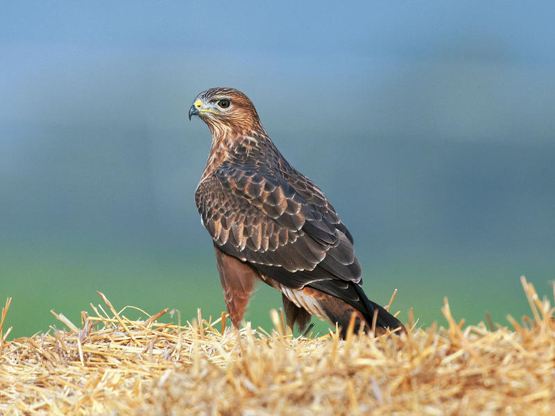 Buzzard subspecies fall into two groups; The western Buteo group is mainly resident or short-distance migrants and the eastern vulpinus group which includes Steppe Buzzard. Steppe Buzzard breeds from east Europe eastward to the Far East, excluding Japan. It is a long-distance migrant, excepting some north Himalayan birds, and winters in Africa, India and southeastern Asia. Compared to the nominate form (Common Buzzard), it is slightly smaller (45–50 cm long), longer winged and longer tailed.